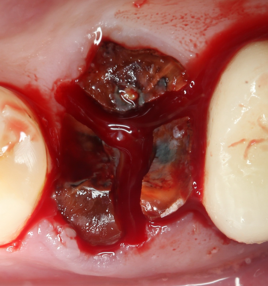 Давайте переформулируем задачу операции удаления. Обозначим ее не как «удаление зуба любой ценой«, а как «удаление зуба с максимальным сохранением окружающих тканей«. Даже в случае острой боли. Потому что, если зуб, буквально, выдран с половиной альвеолярного гребня, никакая последующая консервация не поможет избежать остеопластики.