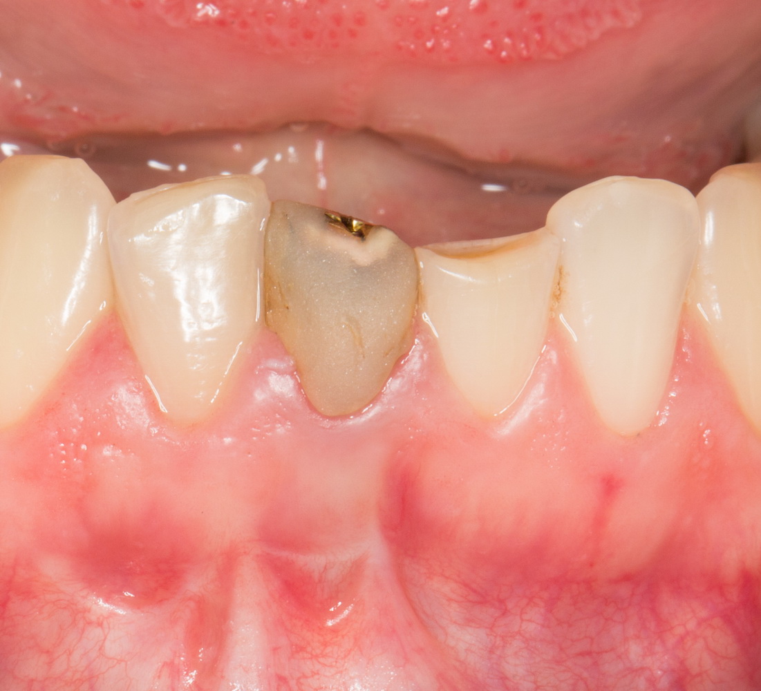 Но вот, вам приходится ставить имплантат в область одного нижнего резца. Что-то вроде вот такой ситуации: