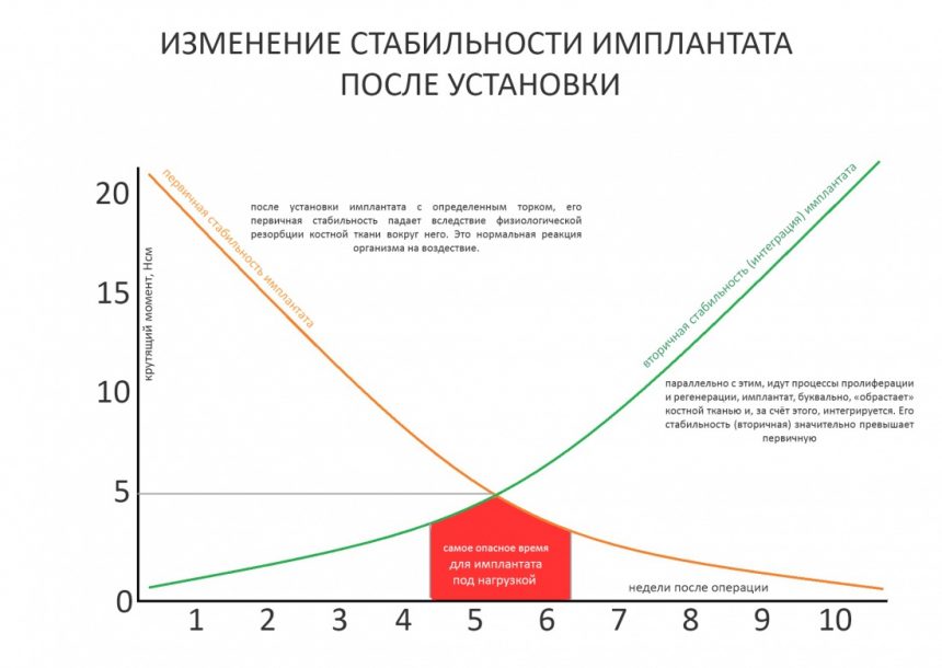 — возникновение и нарастание подвижности формирователя или коронки (при немедленной нагрузке). Почему это происходит — см. выше.