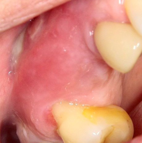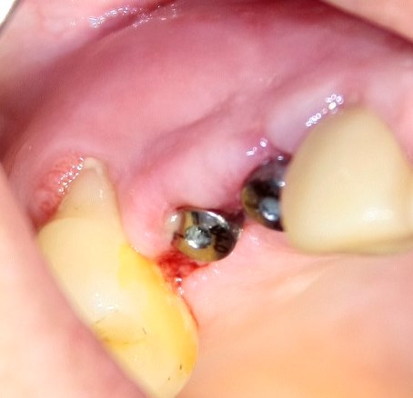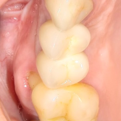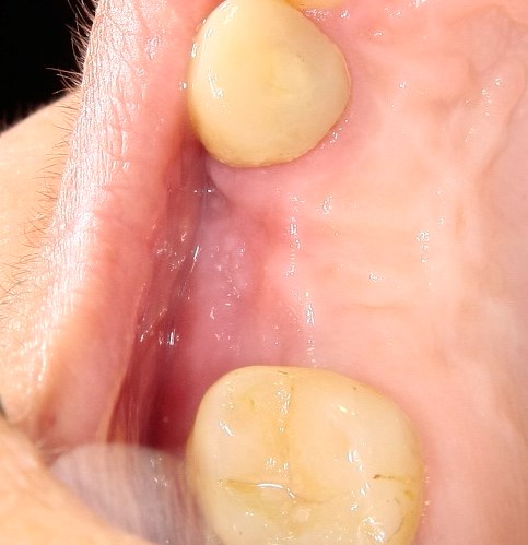 Через три недели мы приступаем к повторной установке формирователей десны. К этому времени область операции выглядит следующим образом: