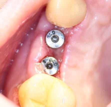 Некоторое время ждем полной эпителизации раны. Через месяц после установки формирователей десны (и почти два месяца после начала лечения):