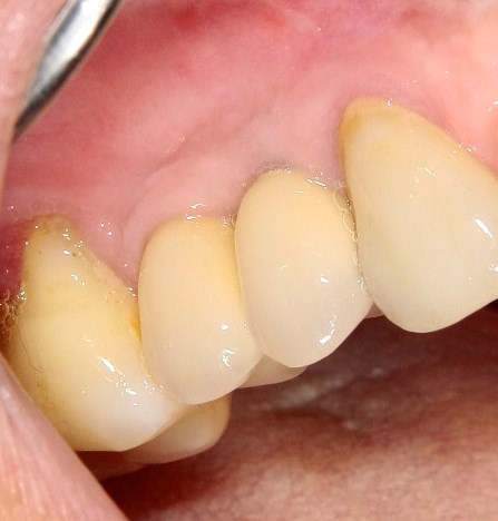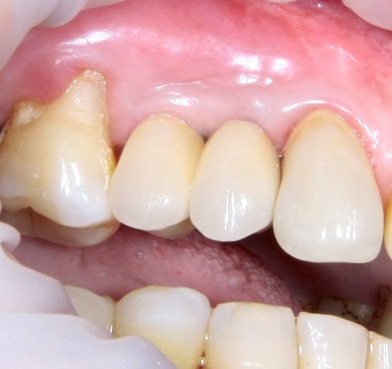 - Рецессия десны в области медиального корня шестерки — на тот момент мы просто не умели надежно их закрывать.