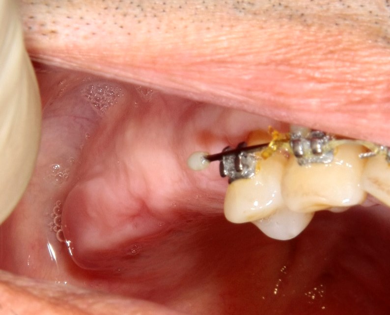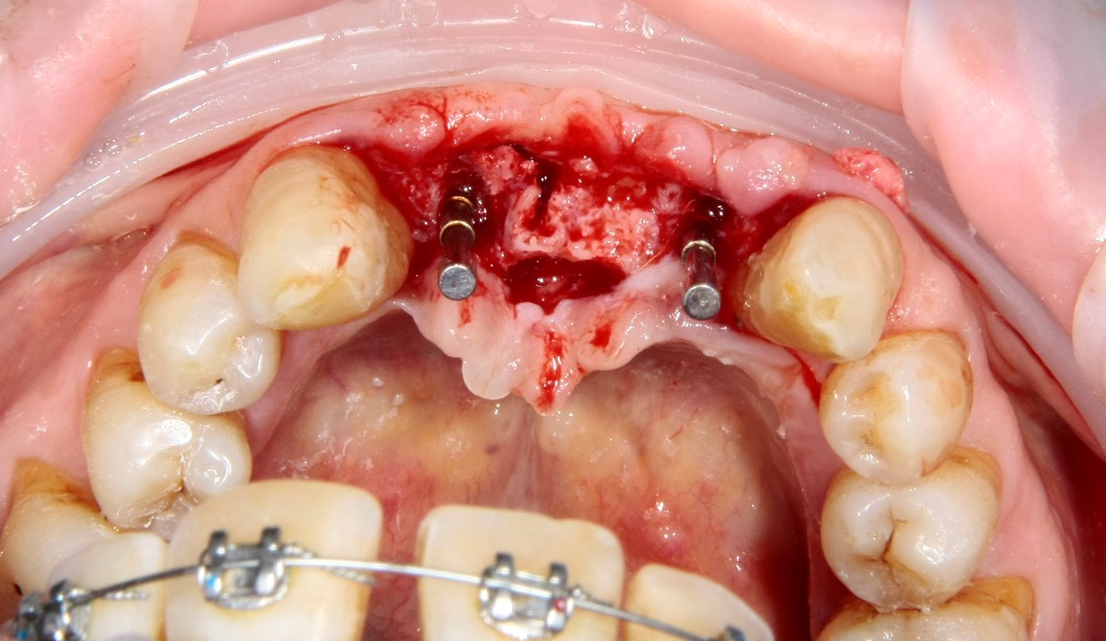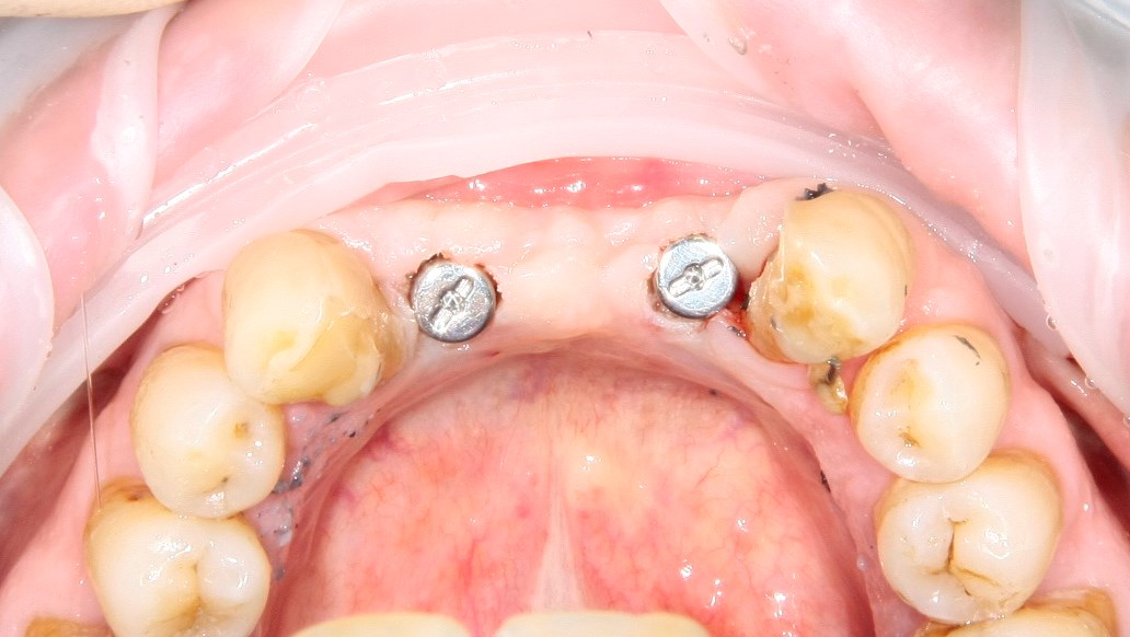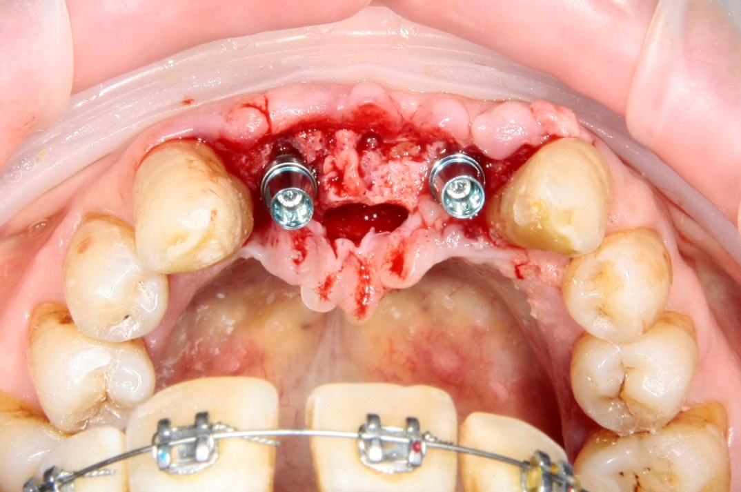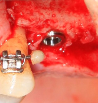 Следует заметить, что к имплантации на верхней челюсти мы приступаем по команде врача-ортодонта, когда закончится период активного перемещения зубов, и они займут свои места. В противном случае, из-за движения зубов, наши импланты могут оказаться вовсе не там, где мы изначально планировали.