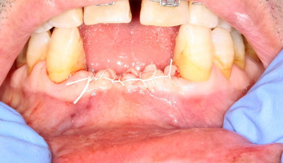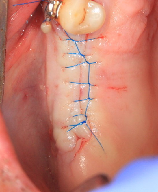 Послеоперационный период — комфортный и безболезненный. Швы снимаем прямо из-под протеза на 12 день.