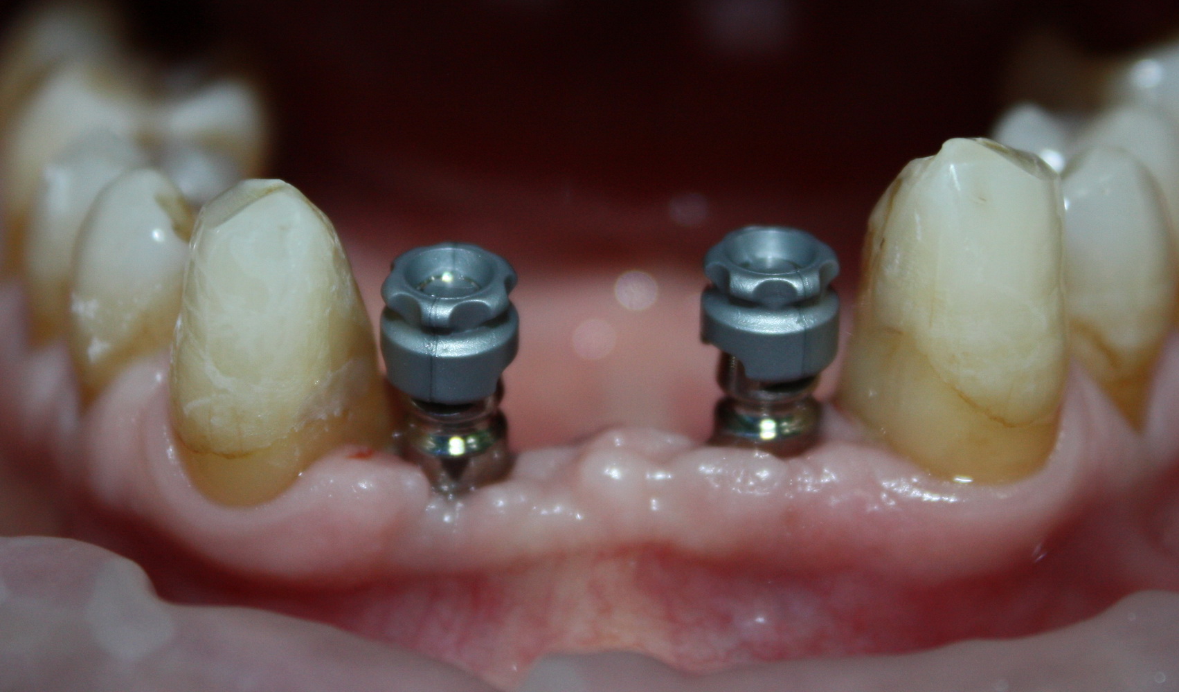 Итак, временные коронки зафиксированы на импланты, которые установили около двух месяцев назад: