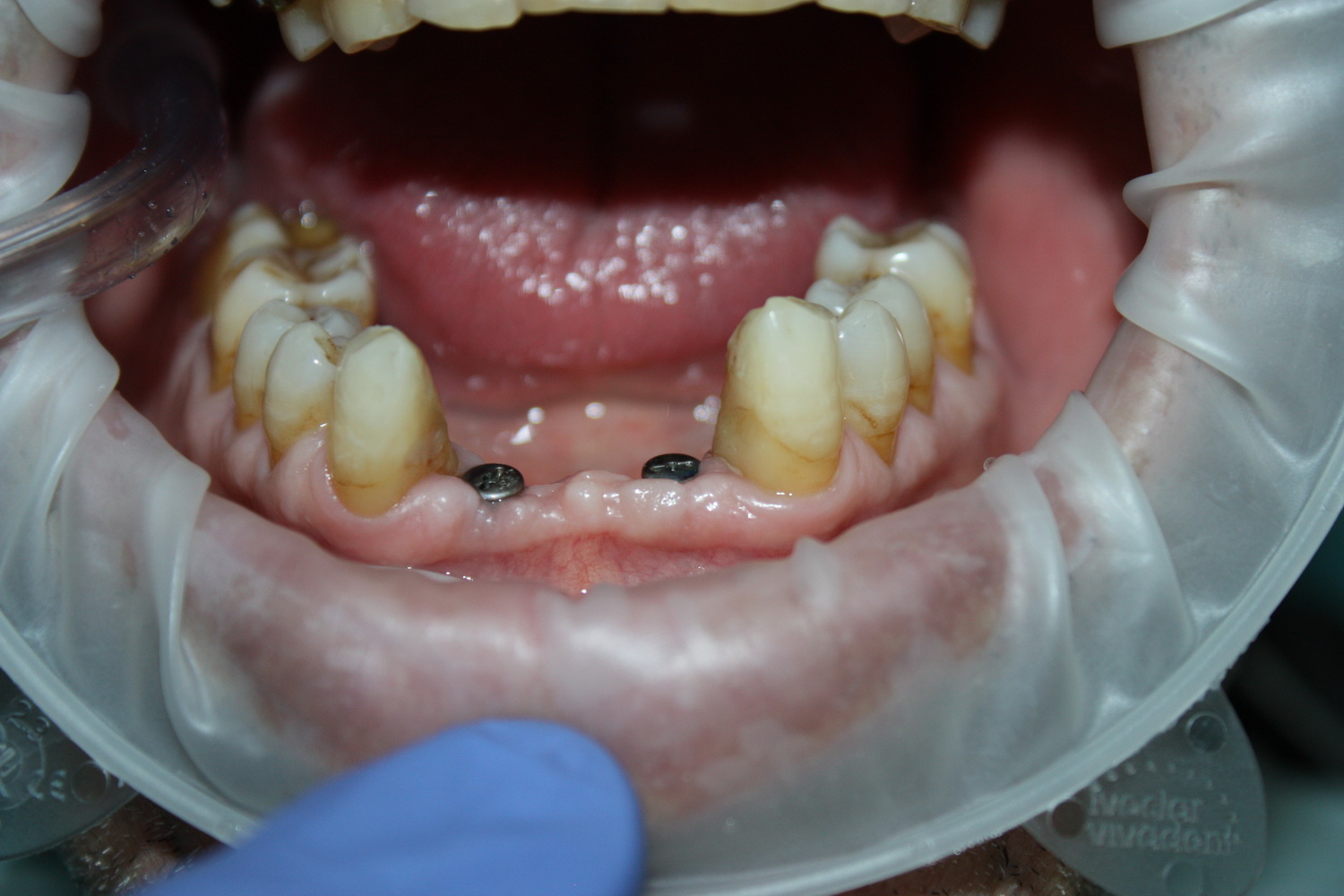 Пока заживает правая сторона, мы приступаем к имплантации на левой части нижней челюсти. Схема имплантации совершенно такая же, поэтому опишу очень кратко:
