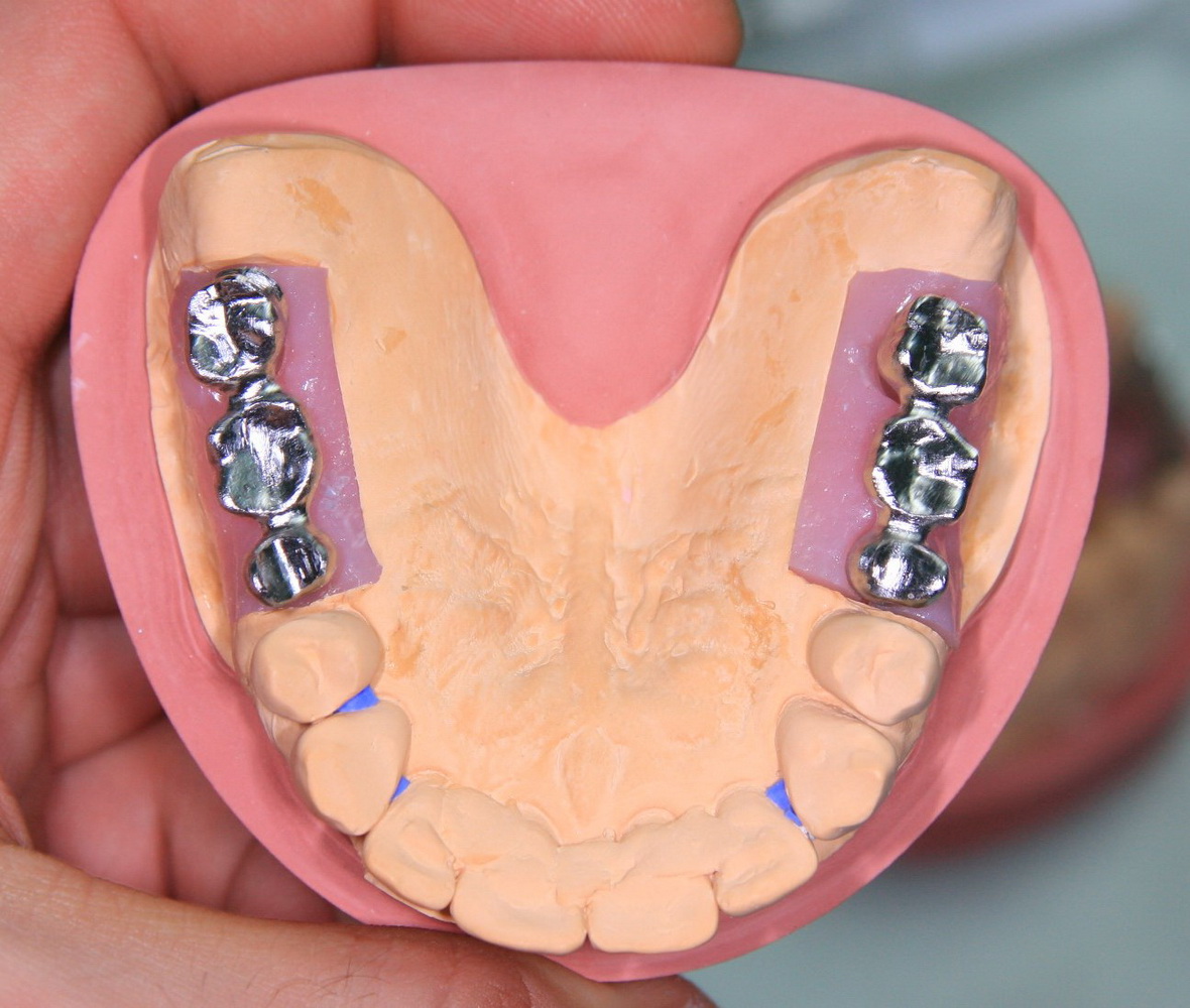 А вот свежеизготовленные протезы перед фиксацией в полости рта: