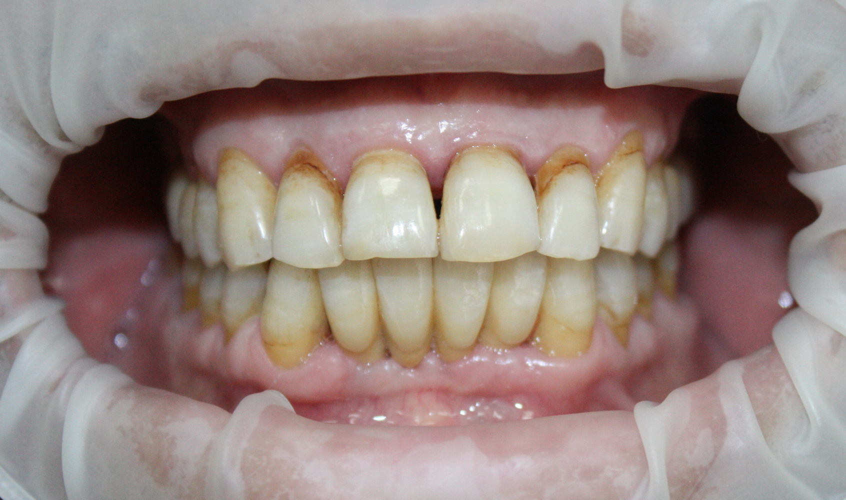 Кстати, с момента начала лечения прошло чуть больше трех месяцев. Вот так выглядит полость рта перед началом лечения: