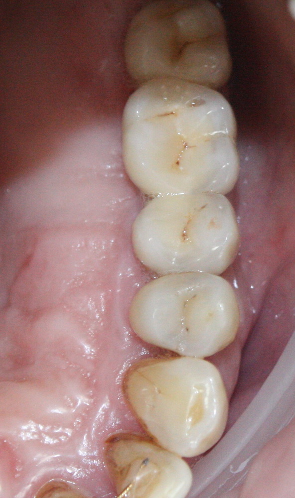 Поскольку бюджет ограничен, мы решили установить импланты в область пятого и седьмого зубов, затем сделать на них мостовидный протез из трех единиц.