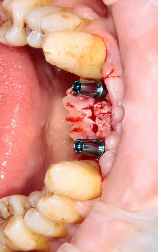 Убираем имплантодержатели, а сами импланты закрываем заглушками: