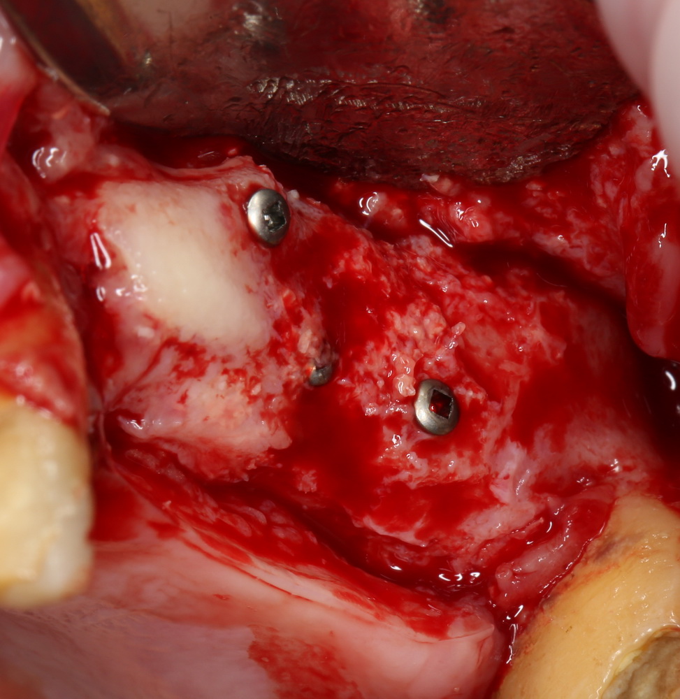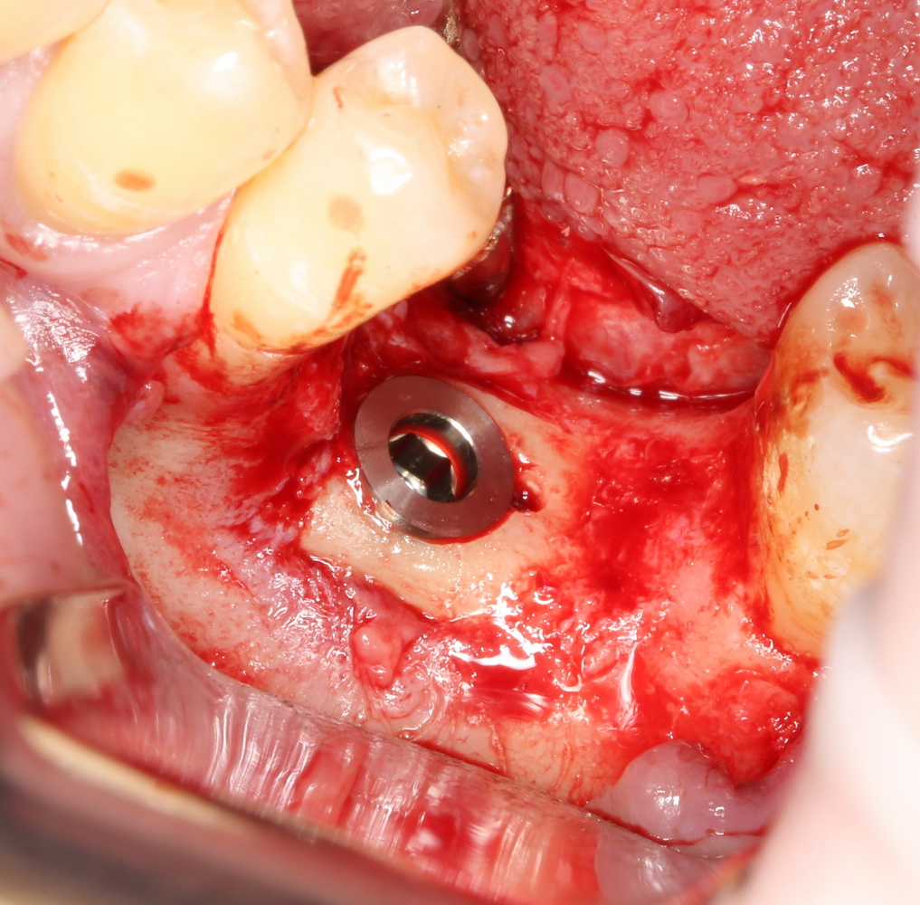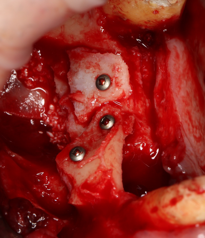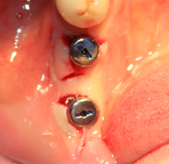 далее — установка импланта. На всякий случай, лучше фиксировать смещенный блок винтами: