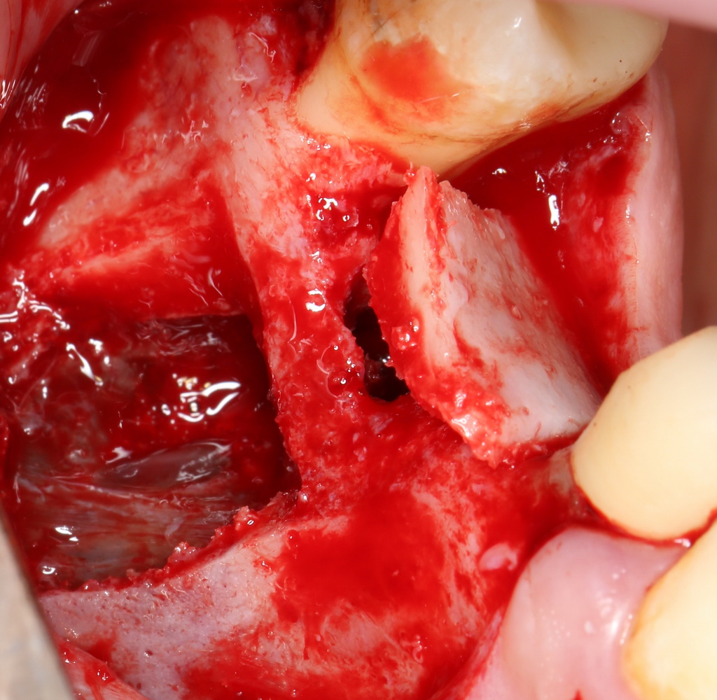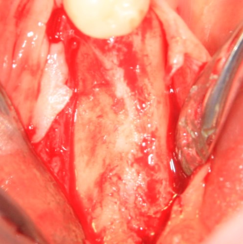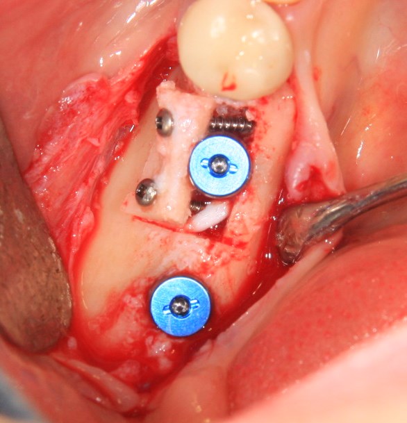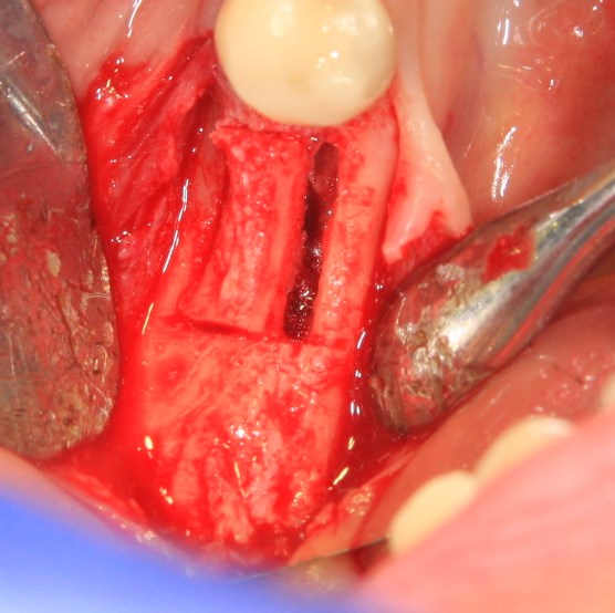 Когда требуется восстановить небольшой объем костной ткани, в определенных участках зубного ряда можно делать т. н. «расщепление альвеолярного гребня»: