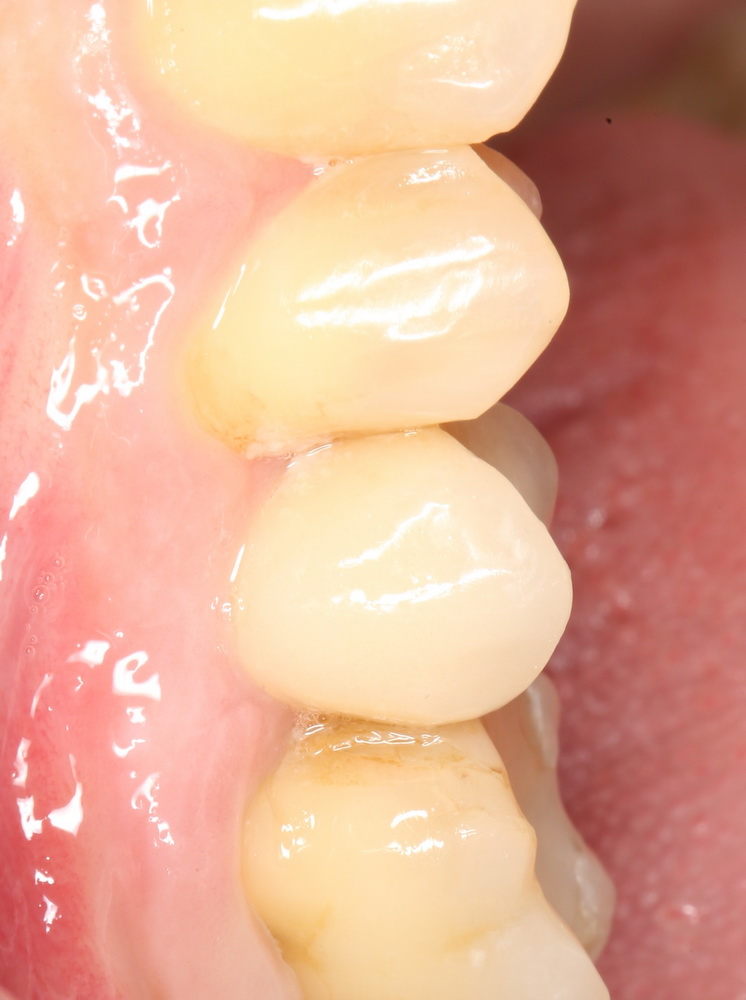 Временная коронка изготавливается из обычной пластмассы, поэтому с цветом особо не заморачиваются. Гораздо важнее состояние десны вокруг коронки (имхо, почти идеально) и ее функционал. Коллега-пациент говорит, что уже забыл, что этот зуб когда-то удаляли.