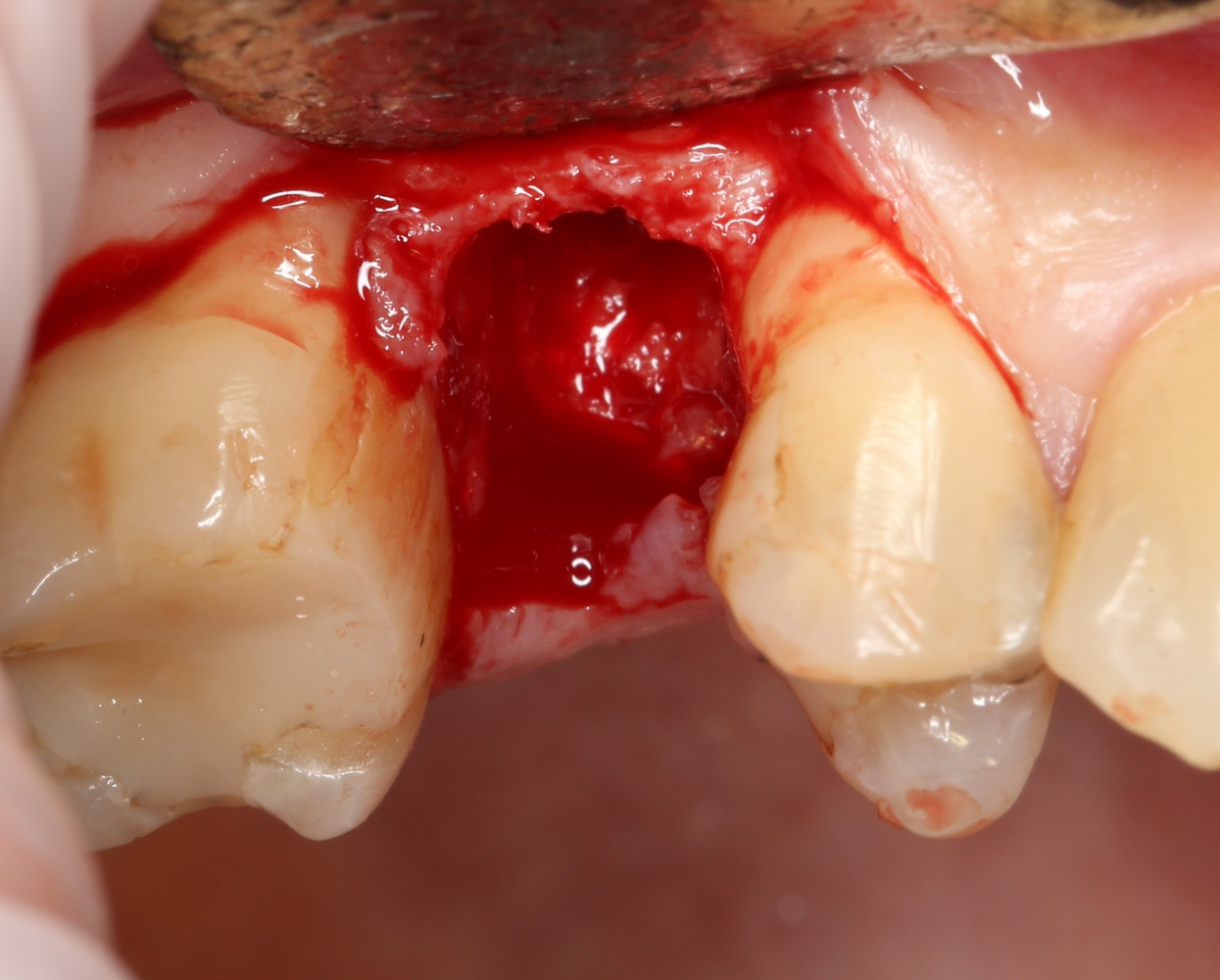 Критически важно провести удаление аккуратно, чтобы не разрушить и без того тонкие стенки альвеолы. Вообще, в хронометраже операции немедленной имплантации удаление зуба занимает 75% времени, это наиболее сложная и деликатная часть вмешательства.