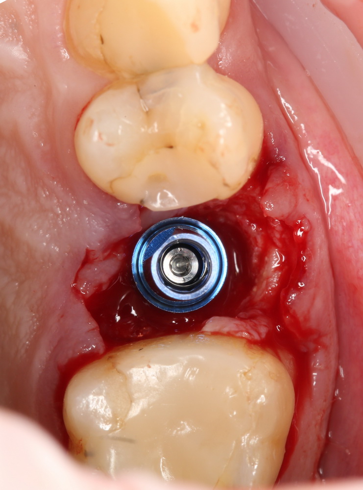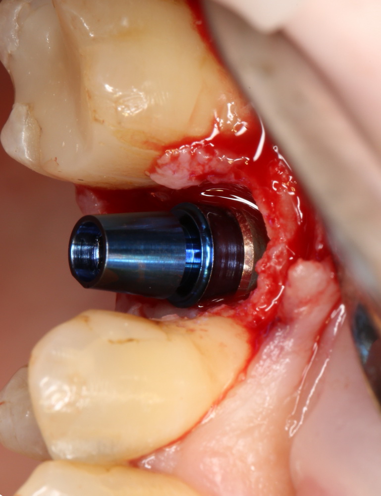 Если не предполагается немедленная нагрузка (изготовление коронки на имплантат), первичная стабильность не является обязательной. Тем более, нельзя пытаться ее достичь, меняя положение и, особенно, погружение импланта. Если есть опасения, можно закрыть имплантат заглушкой, а саму лунку герметично ушить, используя свободный слизистотканный аутотрансплантат или (что разумнее) коллагеновую матрицу Mucograft Seal. Про последнюю обязательно расскажу вам, как только наберу достаточное количество клинических примеров.