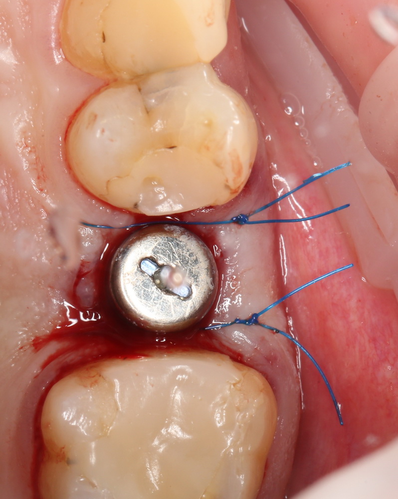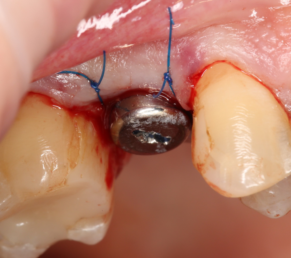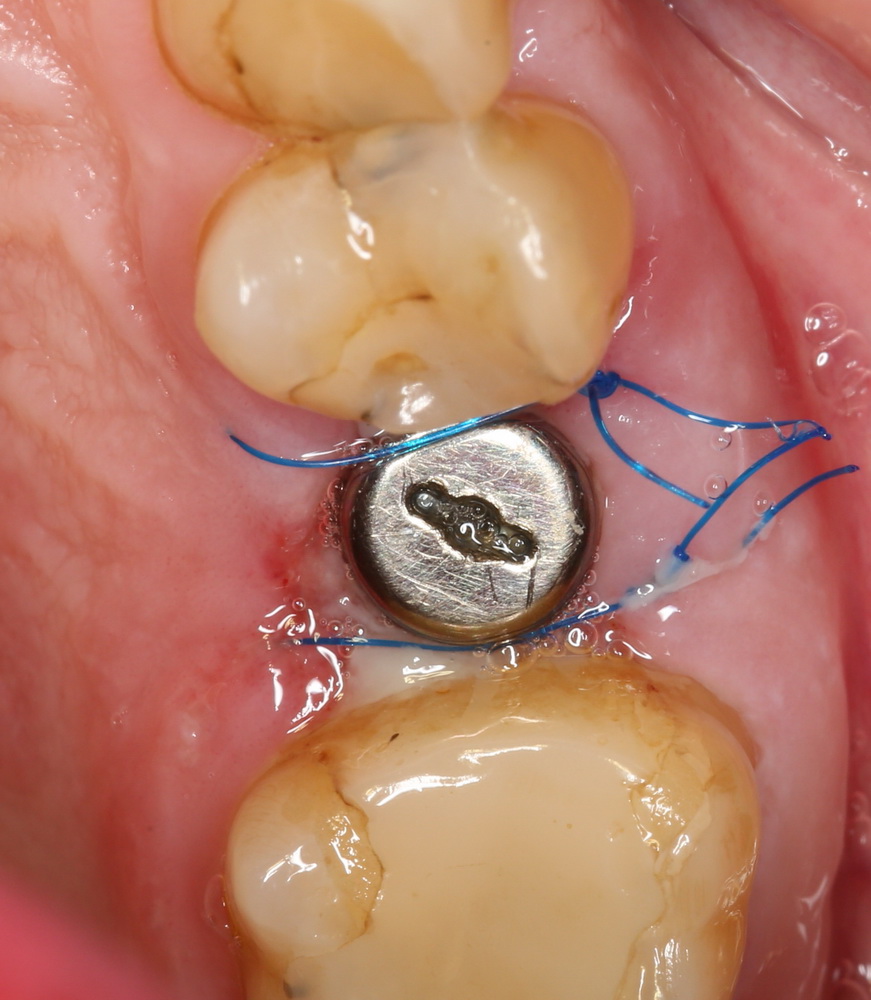 Но в данном случае стабильность хорошая, на имплантат фиксируем формирователь десны, накладываем швы: