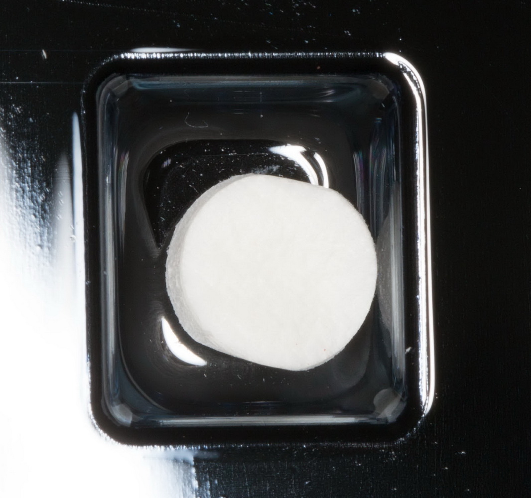 Что делать-то? Есть еще один вариант. Это коллагеновая матрица. В данном случае Mucograft Seal. Почему Seal? Просто потому, что большой фрагмент матрицы нам не нужен, да и стоит он дорого (а наша пациентка — не самый богатый человек на планете). А Seal стоит недорого, при этом, это всё тот же Mucograft. Его размер (8 мм в диаметре) позволяет нам решить проблему с недостатком слизистой.