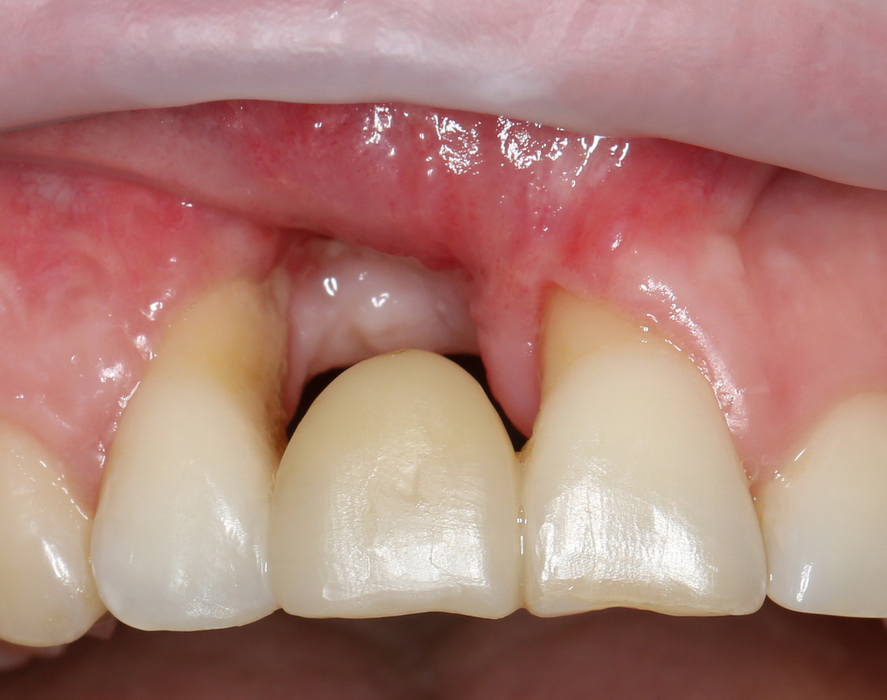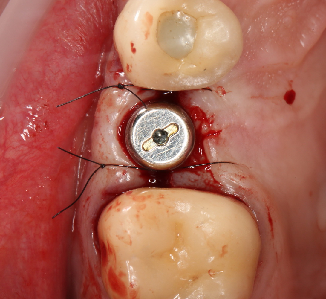 На этот раз рана ушивается вообще без каких-либо проблем. И мы получаем ожидаемый результат имплантологического лечения:
