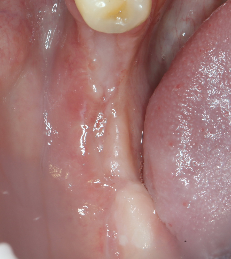 Да, не ослышались. Все начинается с разреза. Нередко его переносят на подвижную слизистую оболочку — чтобы проще было подтянуть и зашить. По факту, такое планирование доступа будет не совсем верным: подвижная слизистая оболочка легко растягивается и «пропускает» даже между часто наложенных лигатур, не обеспечивая нормальной герметичности. К тому же, она, как правило, имеет небольшую толщину, а это значит, что барьер между графтом и внешней средой получается очень непрочным и тонким. Другими словами, делая разрез по подвижной слизистой, мы не только не облегчаем себе работу по ушиванию раны, но и существенно увеличиваем риски расхождения швов и последующего инфицирования графта.