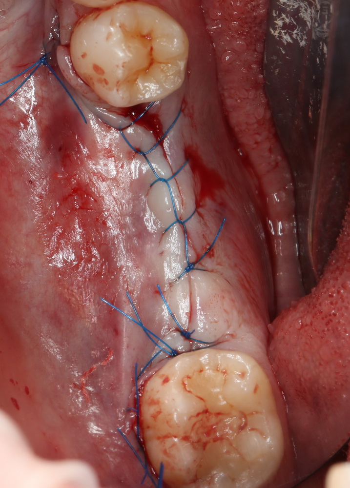 накладываются швы, причем лунка четвертого зуба ушивается наглухо (здесь пригодилась бы методика с лоскутом или мукографтом):