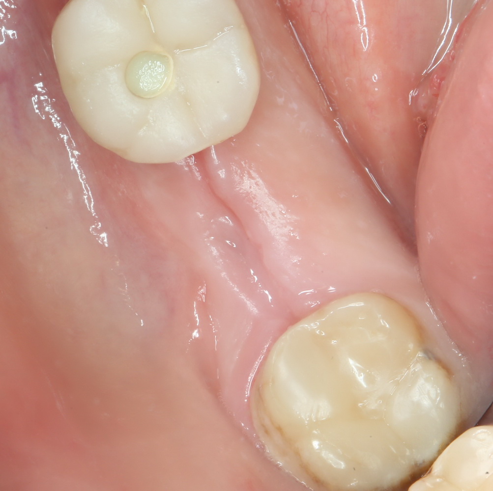 Именно поэтому при ожидании имплантации (напомню, оптимальные сроки для отсроченной имплантации — 1.5-2 месяца после удаления) следует, по возможности, избегать использования даже небольших съемных протезов.