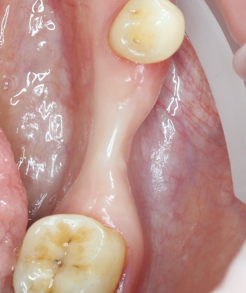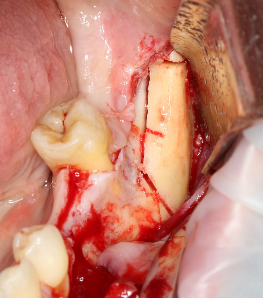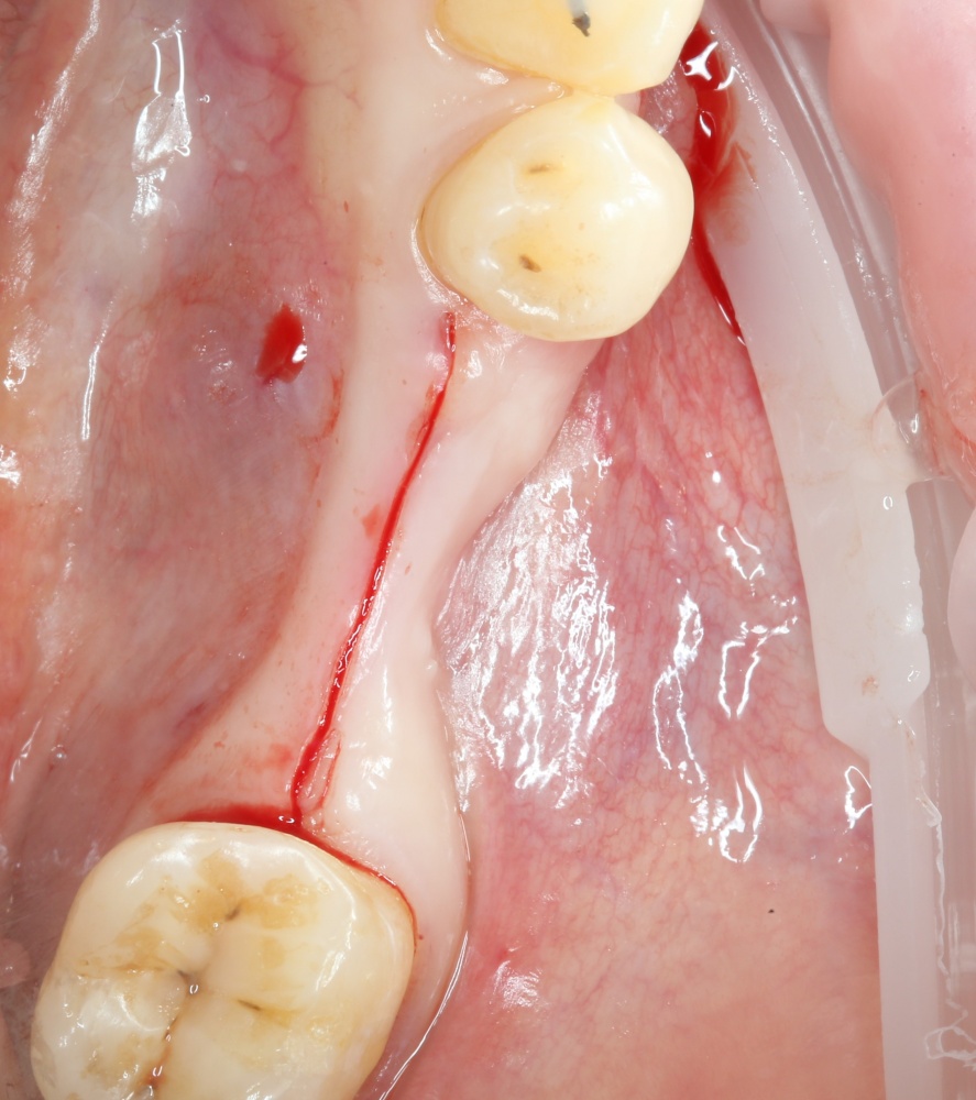 Не нужно скелетировать весь альвеолярный гребень целиком. Мы делаем это только в тех участках, которые необходимы для работы в настоящий момент. Потом, при необходимости, можно будет расшириться.