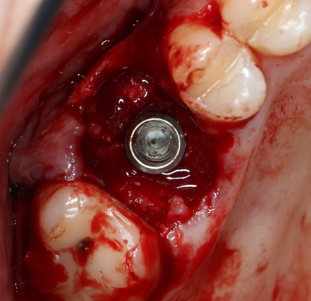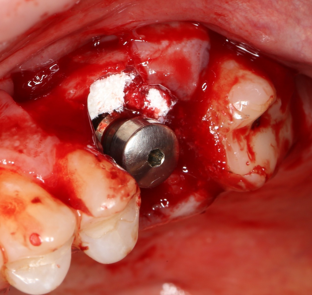 Тем не менее, немедленная имплантация в боковом отделе зубного ряда проводится гораздо чаще, чем в эстетически значимой зоне. И, чаще всего, использовать какие-то материалы для аугментации лунки при установке импланта не требуется — в большинстве случаев, особенности строения и кровоснабжения альвеолярной кости в этих участках позволяют избежать значительной атрофии.