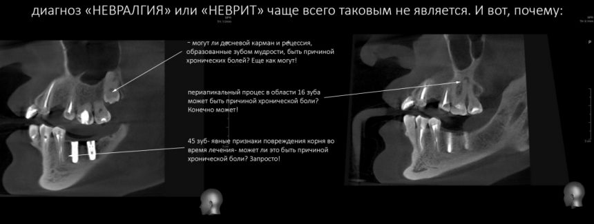 90% всех диагностированных невралгий — на самом деле, хронические пульпиты, периодонтиты или другие известные стоматологические заболевания.