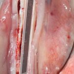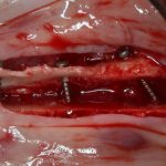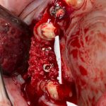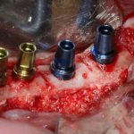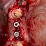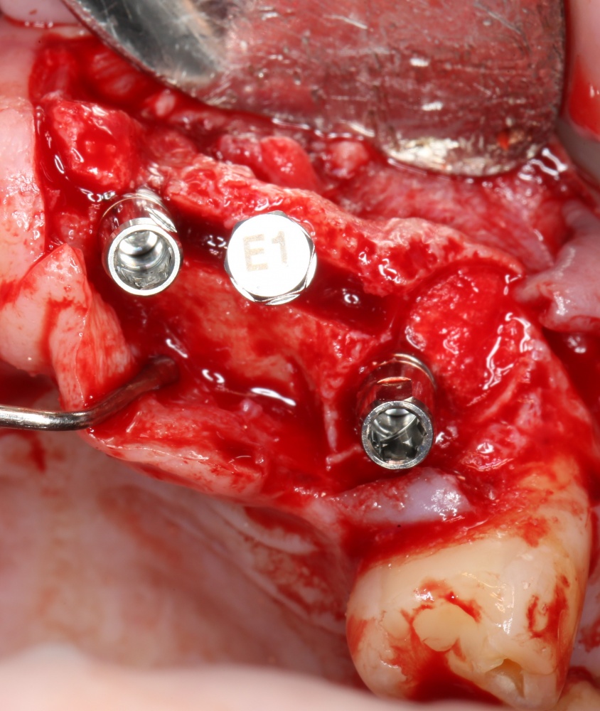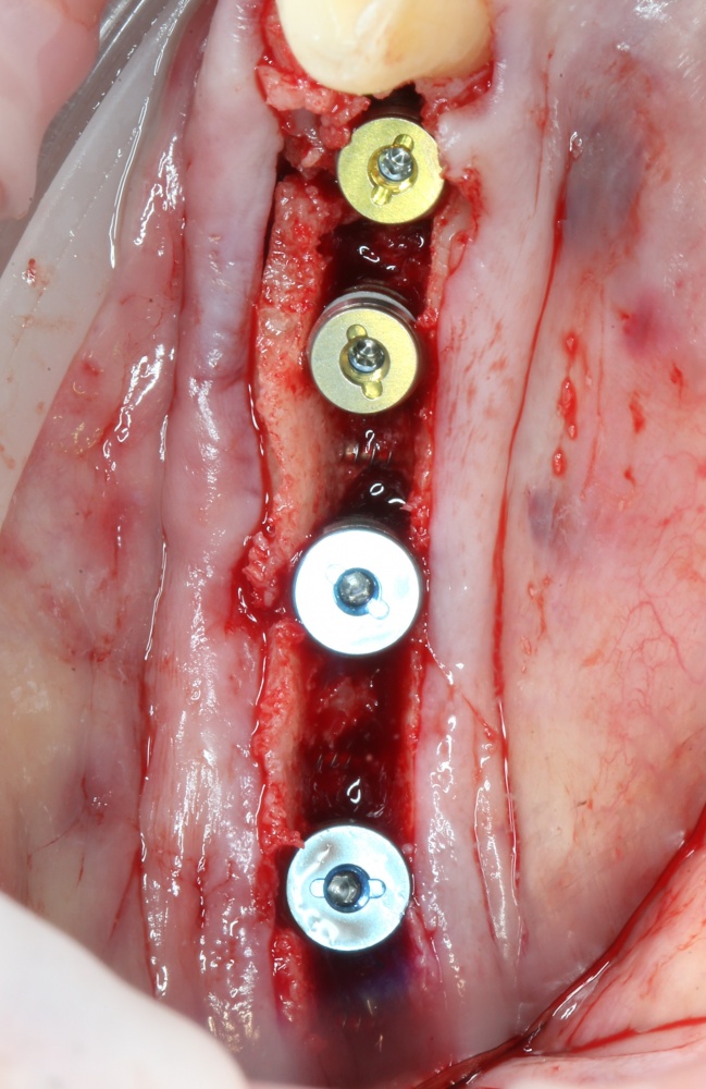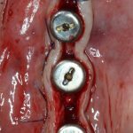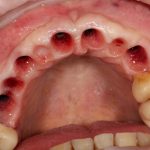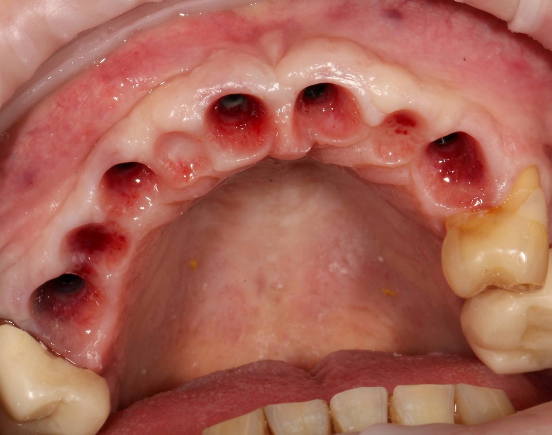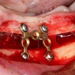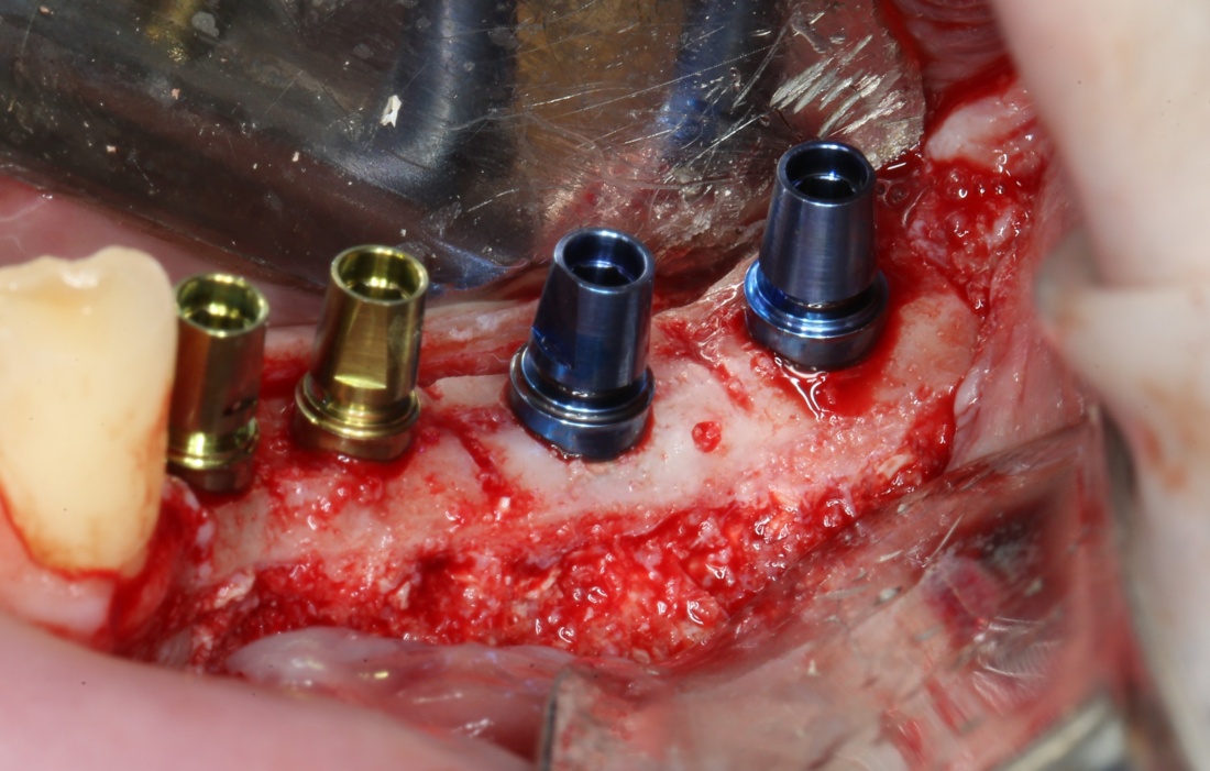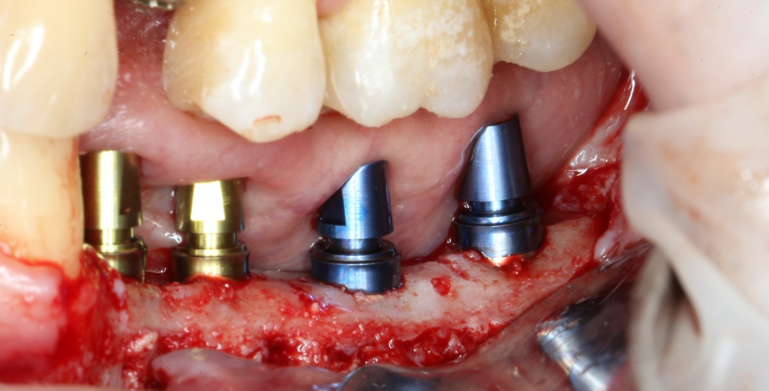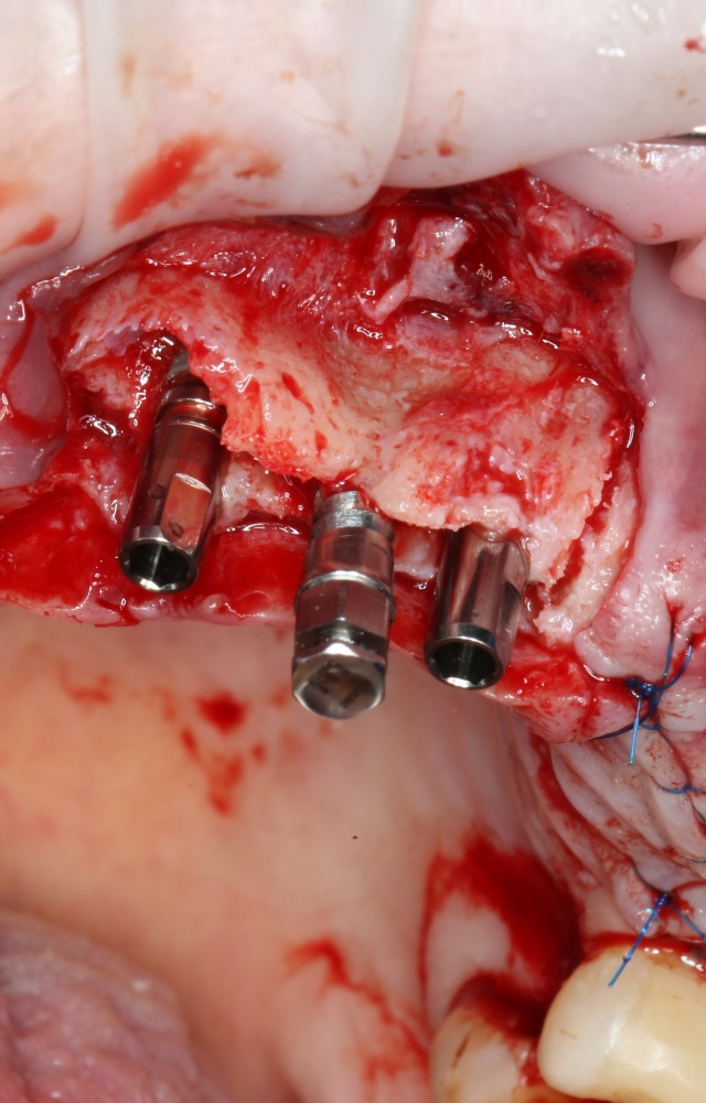 При этом, я хотел бы обратить ваше внимание на один важный момент. То, с чем вы сейчас работаете — не кость, в привычном нам гистолого-физиологическом понимании. Это костная мозоль вперемежку с графтом. Её свойства довольно сильно отличаются от того, что мы привыкли называть костной тканью. Поэтому при установке имплантатов соблюдайте максимальную осторожность и щадящий режим. Никаких диких торков, усилий, больших переходов между размерами фрез допускать нельзя. Будьте аккуратны.