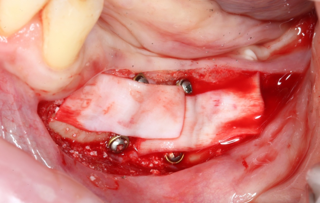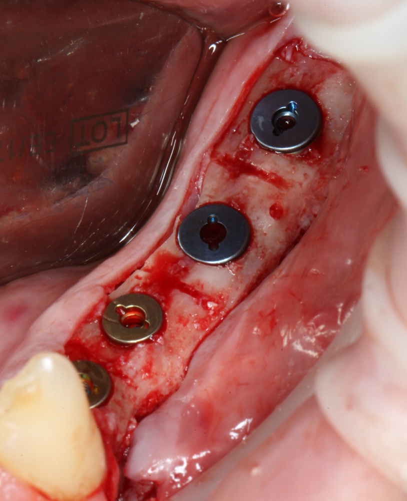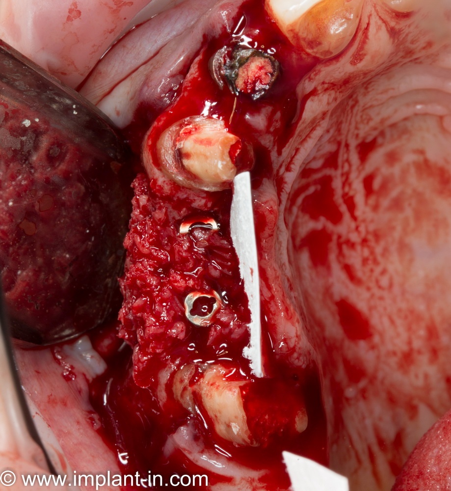 И наоборот, если вы применяете графт в виде гранул (типа, Bio-Oss L), то, для начала, нужно зафиксировать костный фрагмент, затем укладывать графт.