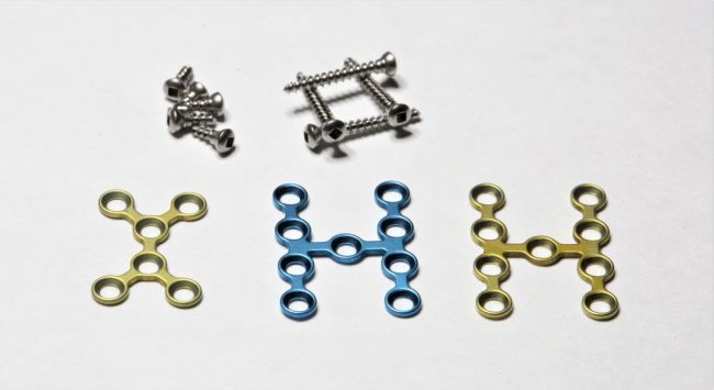 — минипластины. Их выпускается огромное количество. Мы используем, в основном, X- и Н-образные минипластины наименьших размеров — с ними легче работать, они легко адаптируются, но есть и минус — иногда гнутся под нагрузкой.
