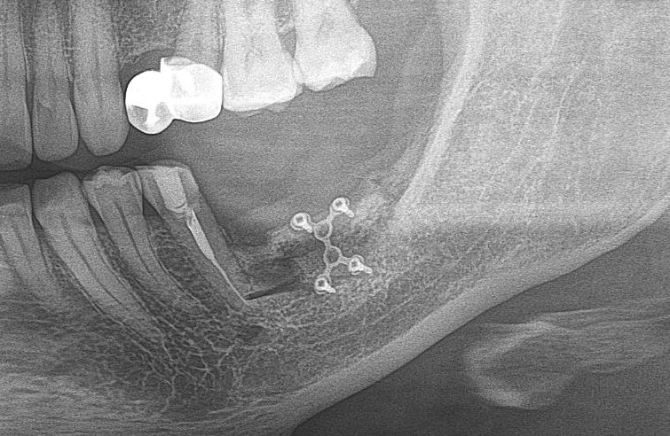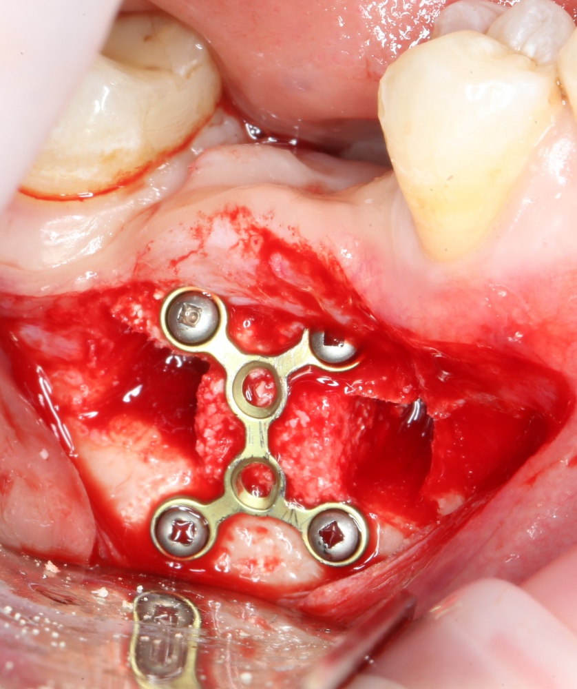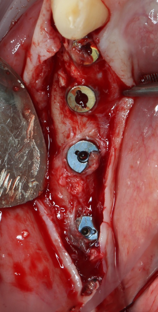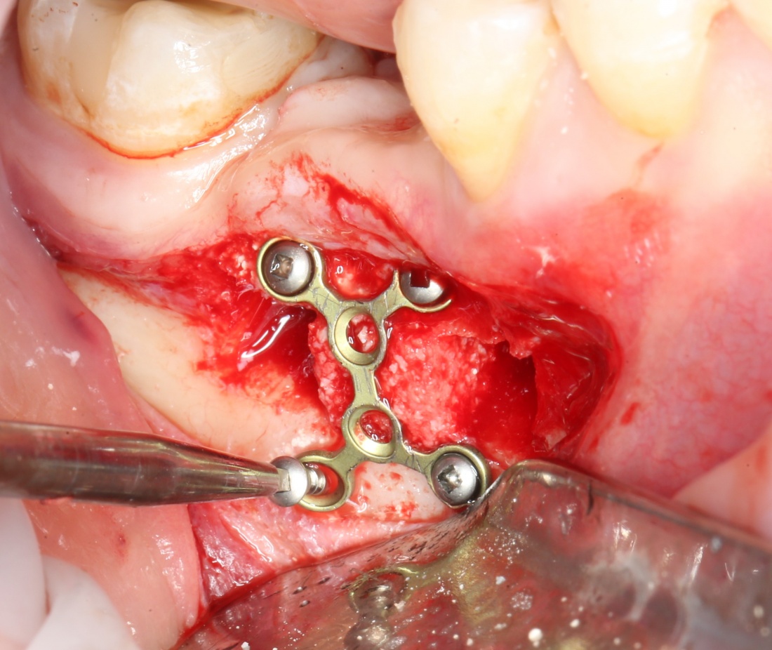 И таки да, иногда можно обойтись без всякого металла. При условии, что перемещенный костный фрагмент нормально удерживается ригидностью слизистой оболочки или графтом: