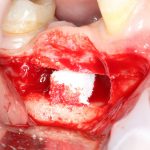 Предвосхищая вопрос, отвечу, что в нашей клинике для таких целей используется барьерная мембрана Geistlich Bio-Gide размеров 16х22 или 25х25 мм. Последней получается даже слишком много — иногда мы её делим и укладываем в два слоя. Но это не принципиально.