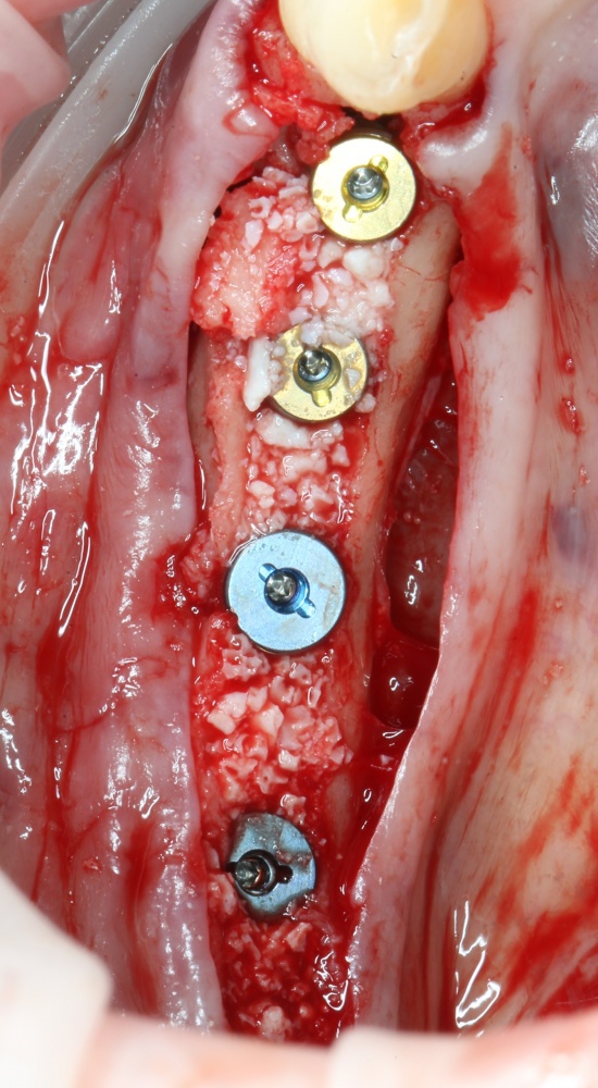 Первый пункт можно реализовать разными способами: с помощью барьерных мембран, сеток, тентовых винтов, пластин и т. д. Кроме того, мы можем использовать аутокостные фрагменты — пластины, блоки и т. д.