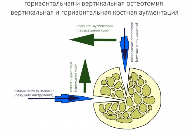 В этом простом, казалось бы, вопросе, существует некоторая путаница. Нередко, доктора путают направление остеотомии с направлением аугментации. Поэтому внесу ясность.