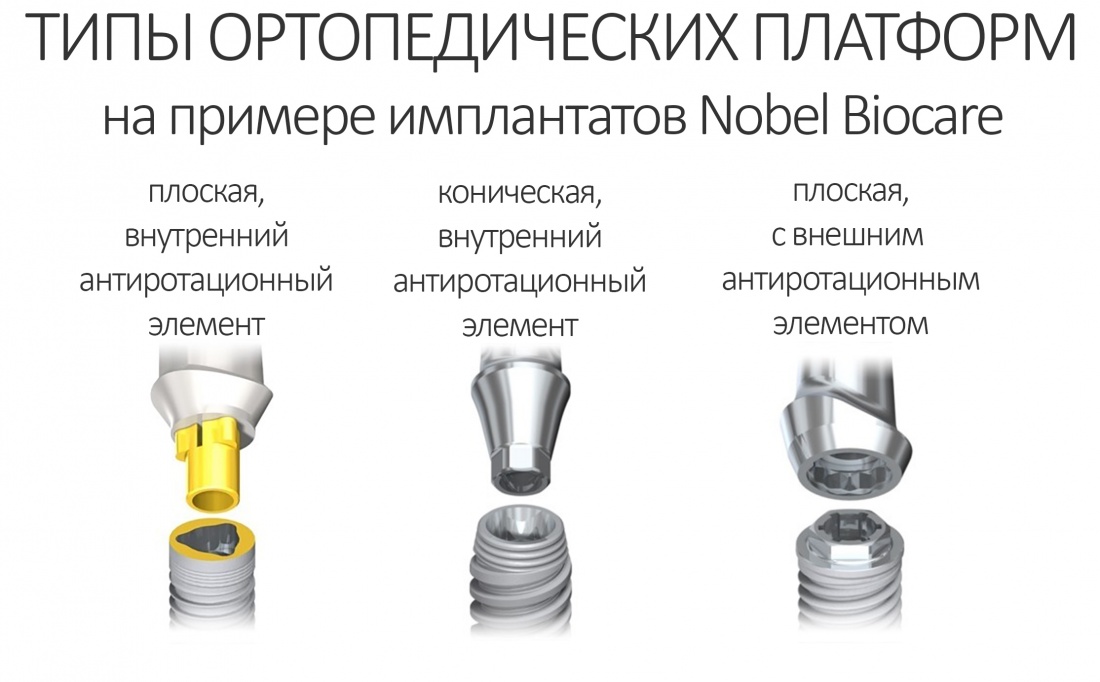 Ортопедическая платформа имплантата: конусы, шестигранники и винты.