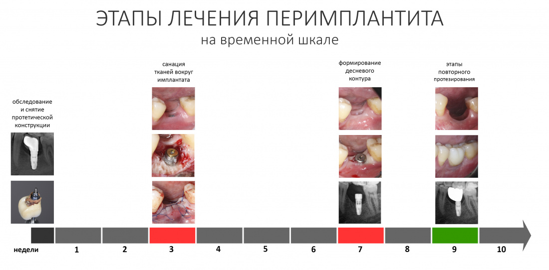 Процесс лечения периимплантита занимает около двух месяцев: