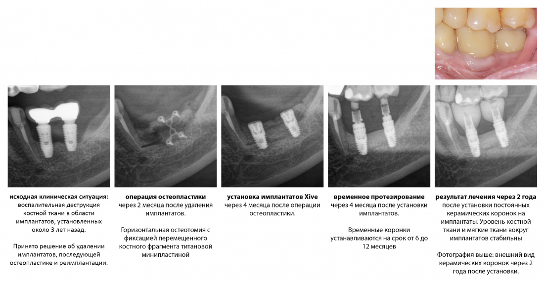 Его цель — достижение устойчивого состояния окружающих имплантат тканей и устранение беспокоящих пациента симптомов, достигается описанными выше процедурами.
