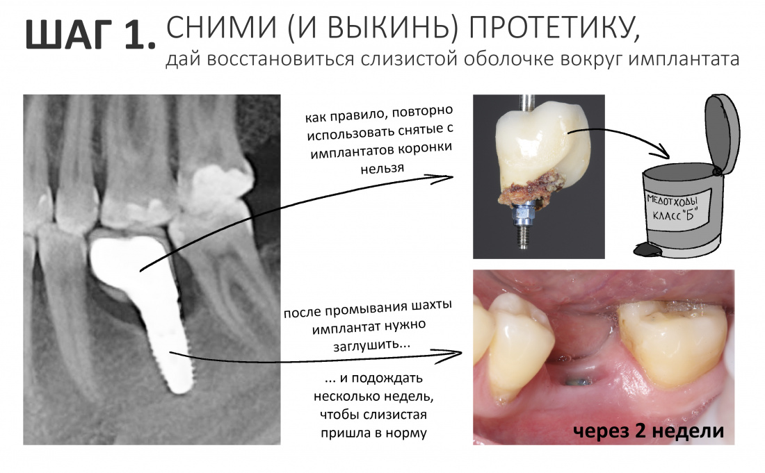 Потому включи, наконец, мозг и смирись с тем, что костную ткань вокруг имплантата уже не восстановить. Всё, что ты можешь сделать — это предотвратить её дальнейшую утрату. И эта задача тебе вполне по плечу.