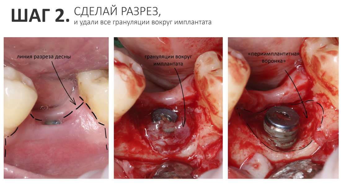 2. Сделай разрез и удали грануляции вокруг имплантата.