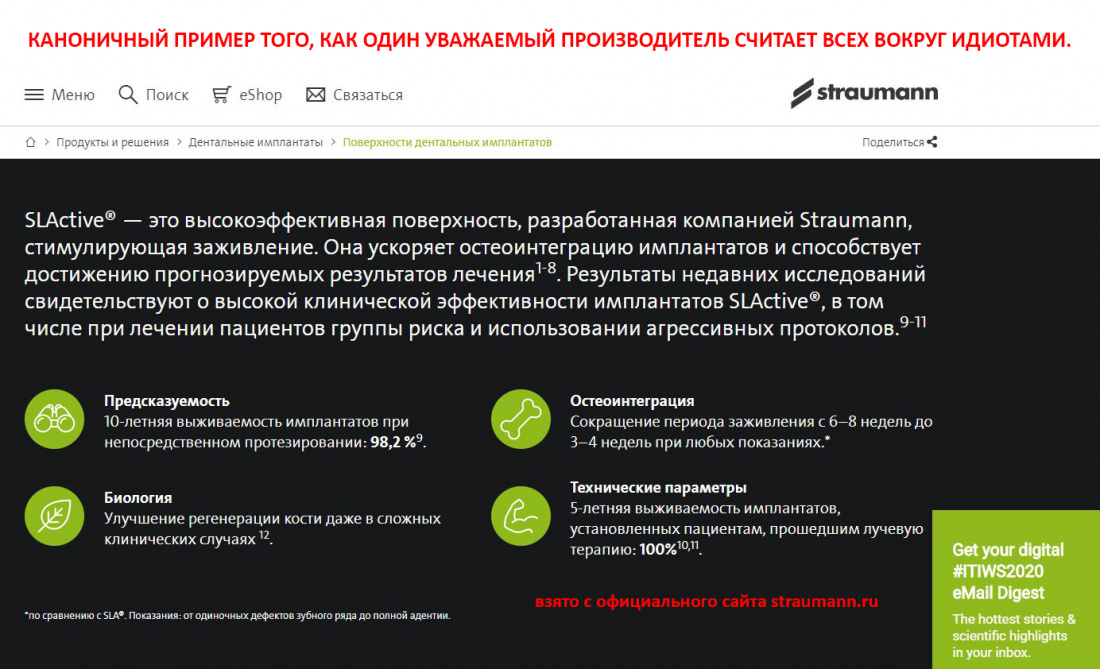 — много других факторов, от неспособности большинства докторов мыслить шире установки «вкрутить имплантат — получить бабки» до откровенного вранья со стороны некоторых производителей, типа «нашим имплантатам не страшен периимплантит».