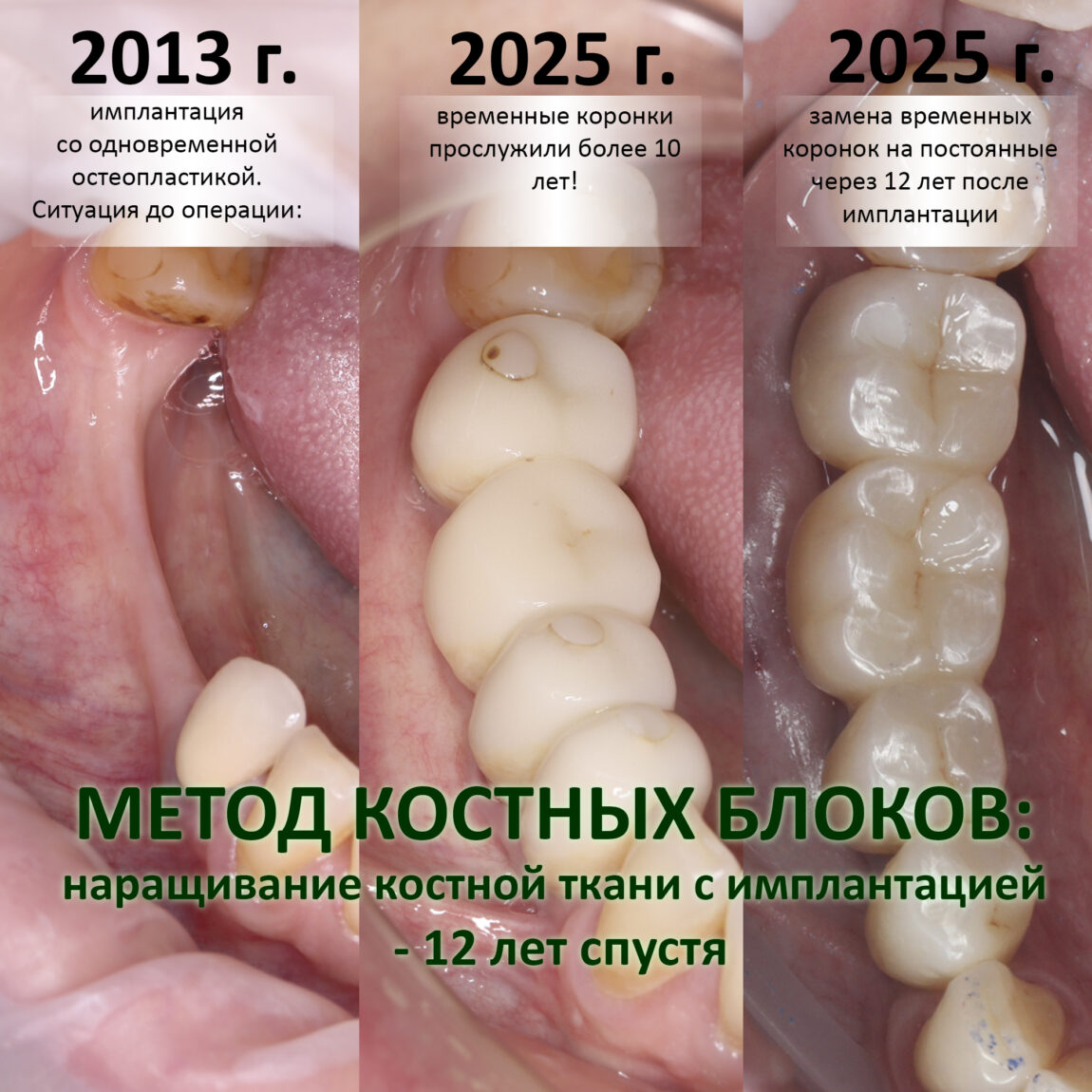 МЕТОД КОСТНЫХ БЛОКОВ: наращивание костной ткани с имплантацией — 12 лет спустя.
