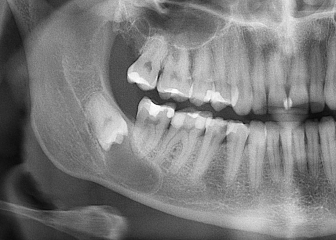 Примерно полтора года назад к нам в клинику обратилась молодая и красивая девушка. Все бы ничего, ничто ее не беспокоило, но вот однажды пошла она лечить зубки, и ей сделали панорамный снимок. Сделали панорамный снимок — забегали, заохали, послали на компьютерную томографию.