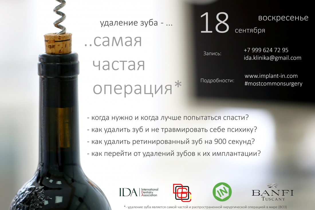 Уважаемые коллеги, наконец, я могу представить вам новый семинар #mostcommonsurgery, организуемый совместно с IDA, и почти целиком посвященный только одному виду хирургических вмешательств — удалению зубов: